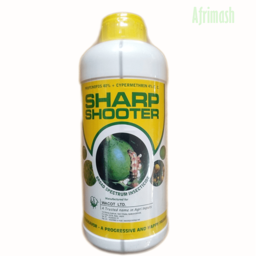 SHARP SHOOTER is a broad spectrum natural insecticide with a rapid onset of action in the control and total annihilation of insect pests. It controls Aphid, Thrip, Whitefly, Ants, Earwigs, Leaf Hoppers, Cabbage Moth, Caterpillars e.t.c. and is safe for use on Trees, Shrubs, Ornamentals, Flowers, Fruits, Vegetables, Indoor and Outdoor plants.